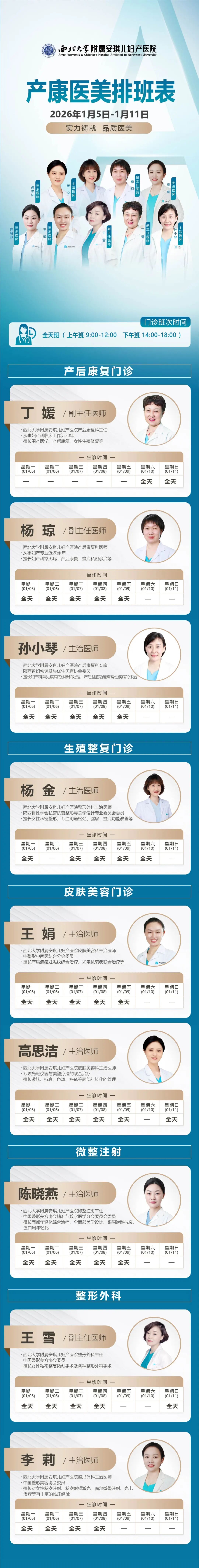 西安安琪儿妇产医院(1月5日至1月11日)专家坐诊时间表