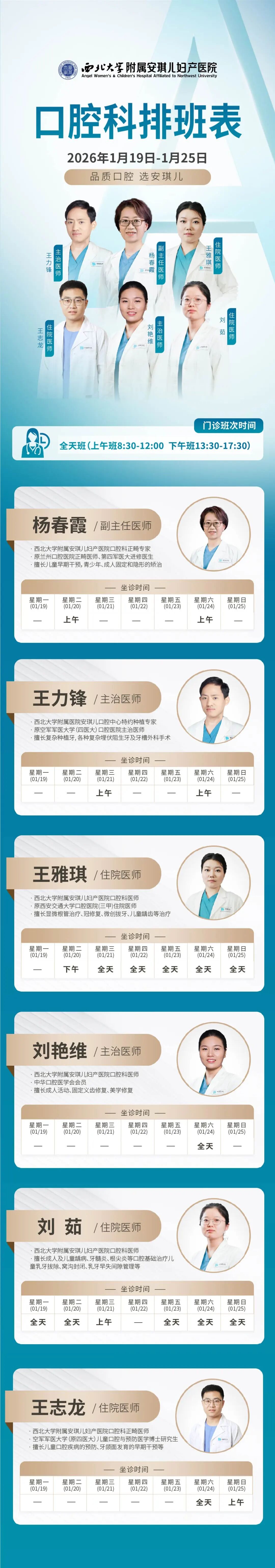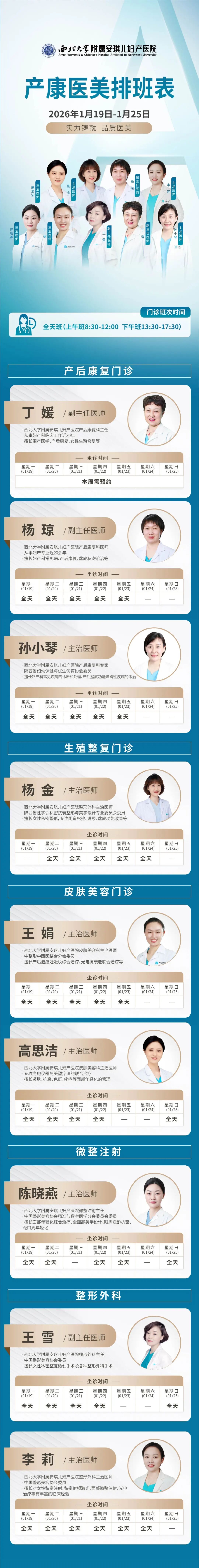 西安安琪儿妇产医院(1月19日至1月25日)专家坐诊时间表