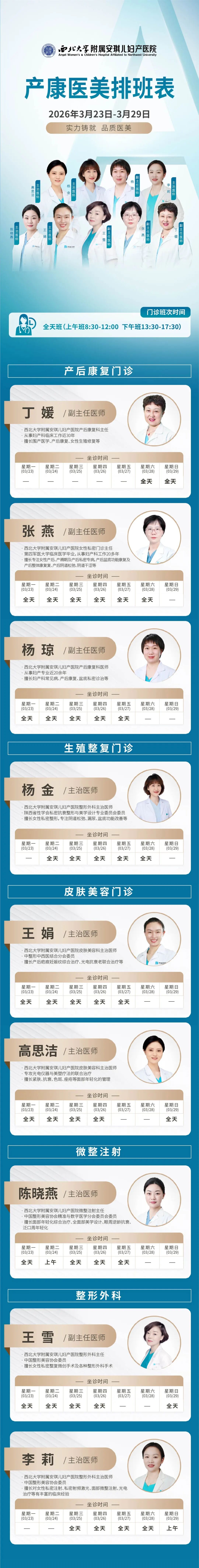 西安安琪儿妇产医院(3月23日至3月29日)专家坐诊时间表